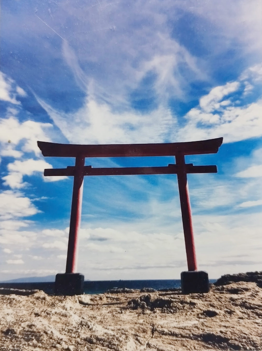 海岸鳥居の上に宝船と白龍さまがお姿を現しました。